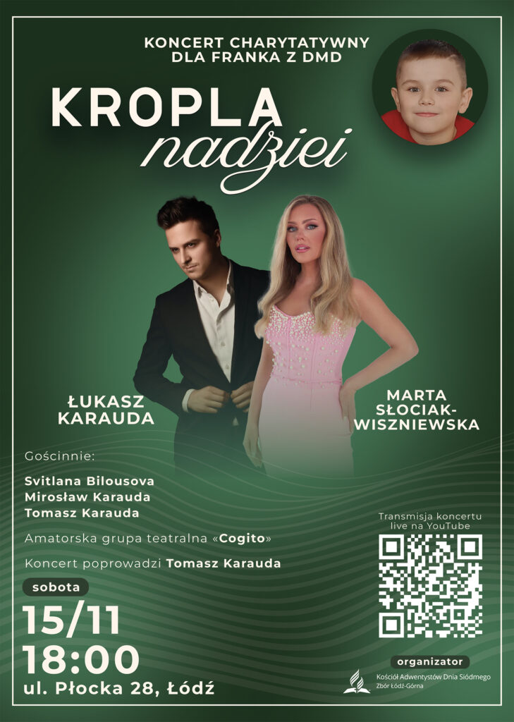 Serdecznie zapraszamy na koncert charytatywny „Kropla nadziei ” na rzecz 9-letniego Franka z chorobą DMD, który odbędzie się 15 listopada o godz. 18:00 przy ul. Płockiej 28.